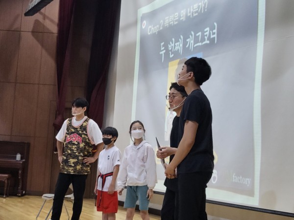 서산에 위치한 동문초등학교 학생들을 대상으로 공연팩토리의 '개그와 함께하는 학교폭력예방교육'을 진행했습니다.