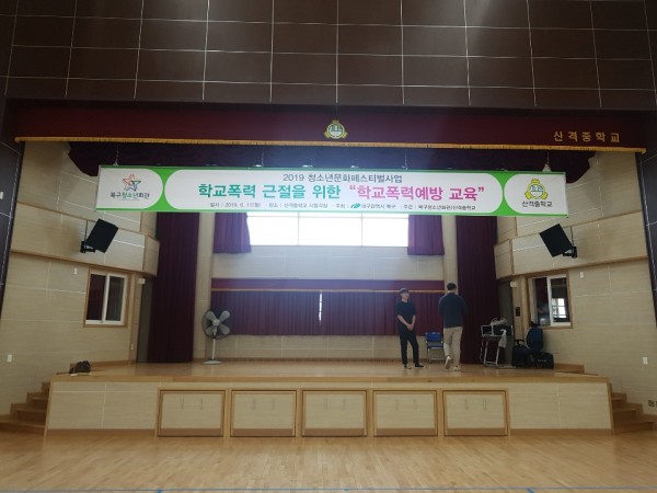 산격중학교 학교폭력예방교육 페이지 정보 작성자 공연팩토리 작성일19-06-18 14:25 조회1,126회 댓글0건 관련링크 이전글 다음글 수정 삭제 목록 답변 본문 2019.06.18 대구광역시 북구 청소년회관 주관으로 산격중학교 친구들과 학교폭력예방교육을 진행했습니다^^ 이전글 다음글 수정 삭제 목록 답변